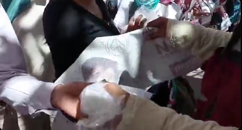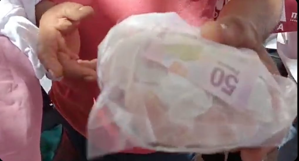 De acuerdo con varios videos que circulan en redes sociales, los asistentes al mitin morenista recibieron “apoyos” durante el evento.