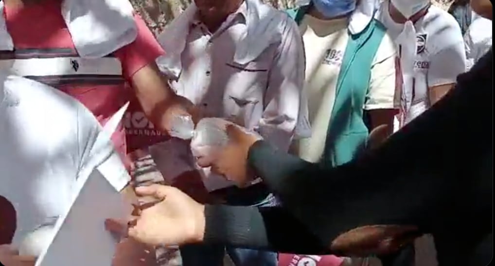 Los asistentes al mitin de Morena recibieron un desayuno junto con un cartel que promociona a Ruvalcaba; sin embargo; el paquete incluía algo más.