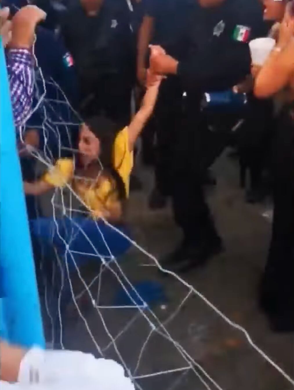 Se pudo ver el abuso policial cuando jalaron a una mujer de blusa amarilla hasta sacarla de la malla, por la fuerza, terminó por caer al suelo.