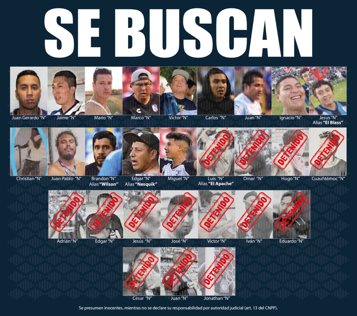 Los presuntos responsables de la trifulca en el estadio Corregidora que aún no han sido detenidos son imputados por lo delitos de: