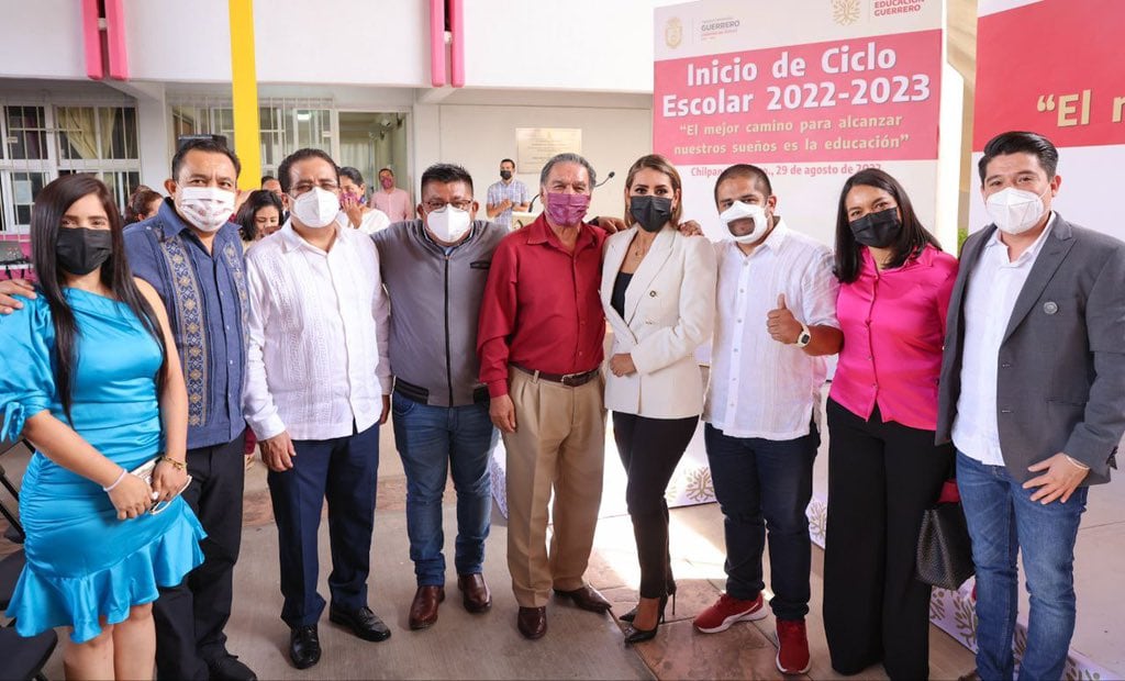 La inauguración del ciclo escolar 2022-2023 en Guerrero la alcaldesa de Chilpancingo, Norma Otilia Hernández Martínez; el Presidente del Tribunal Superior de Justicia, Raymundo Casarrubias Vázquez:
