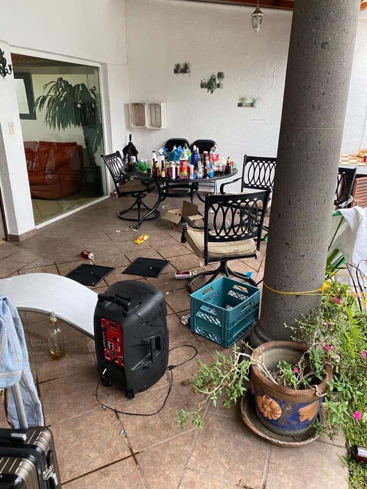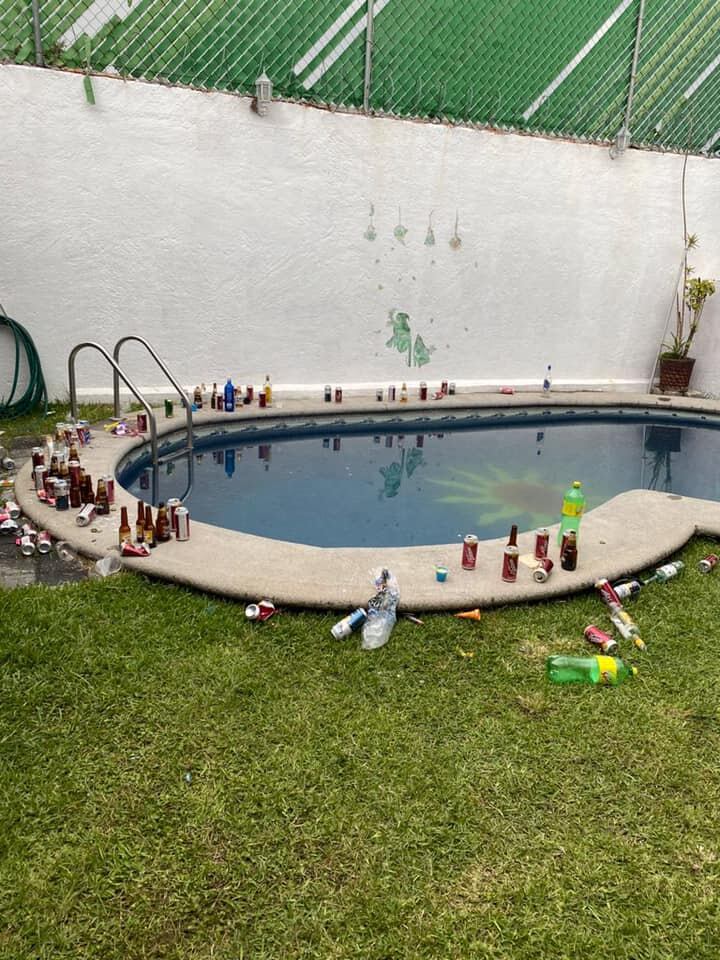 Además, dejaron todo el desorden y basura provocado por su celebración, pues la alberca, así como otras áreas comunes de la casa, se encontraban llenas de latas de cerveza, botellas de alcohol y refrescos.