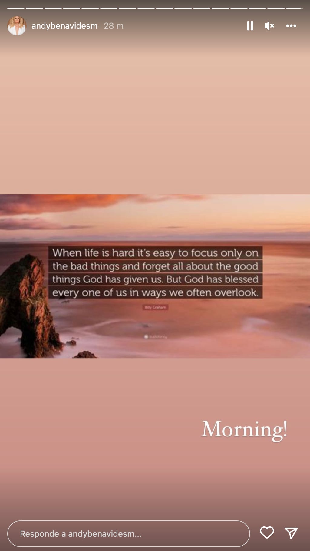 En él, afirma que, cuando la vida es difícil, lo más sencillo es enfocarse sólo en las cosas malas mientras se olvidan las buenas que “dios nos ha dado”.