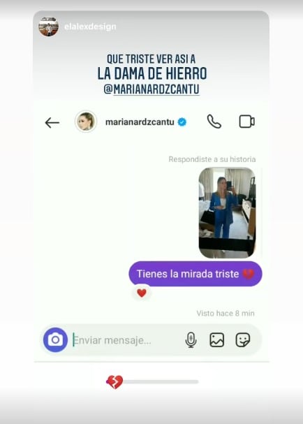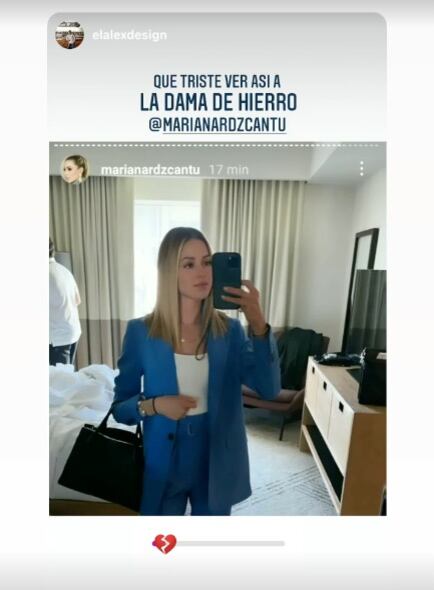 “Qué triste ver a la Dama de Hierro así”, con la expresión triste, comentaron en Instagram sobre Mariana Rodríguez.