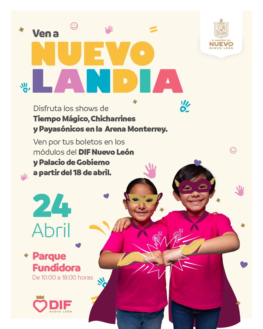 La primera edición de “nuevolandia” se celebrará este domingo 24 de abril en el Parque Fundidora y La Arena Monterrey, Nuevo León, desde las 10:00 horas.