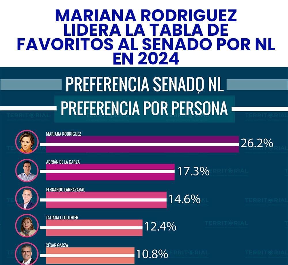 Esta encuesta afirma que Mariana Rodríguez tiene el 26.2% de las preferencias del voto para representar a la entidad en la Cámara de Senadores y está por encima de los favoritos, que son: