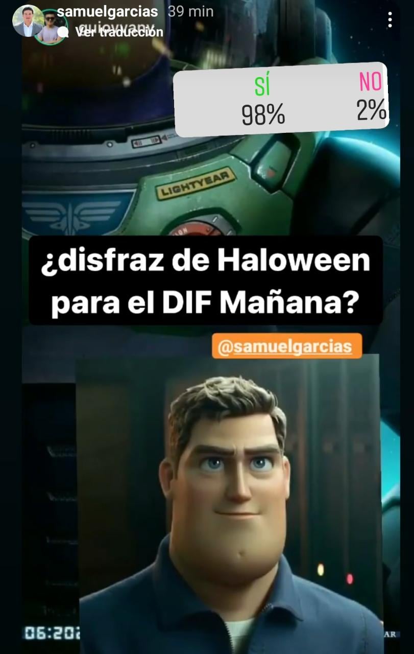 Lo que sí sabemos es que en su cuenta de Instagram, Samuel García ya ha consultado si debería disfrazarse de Buzz Lightyear.