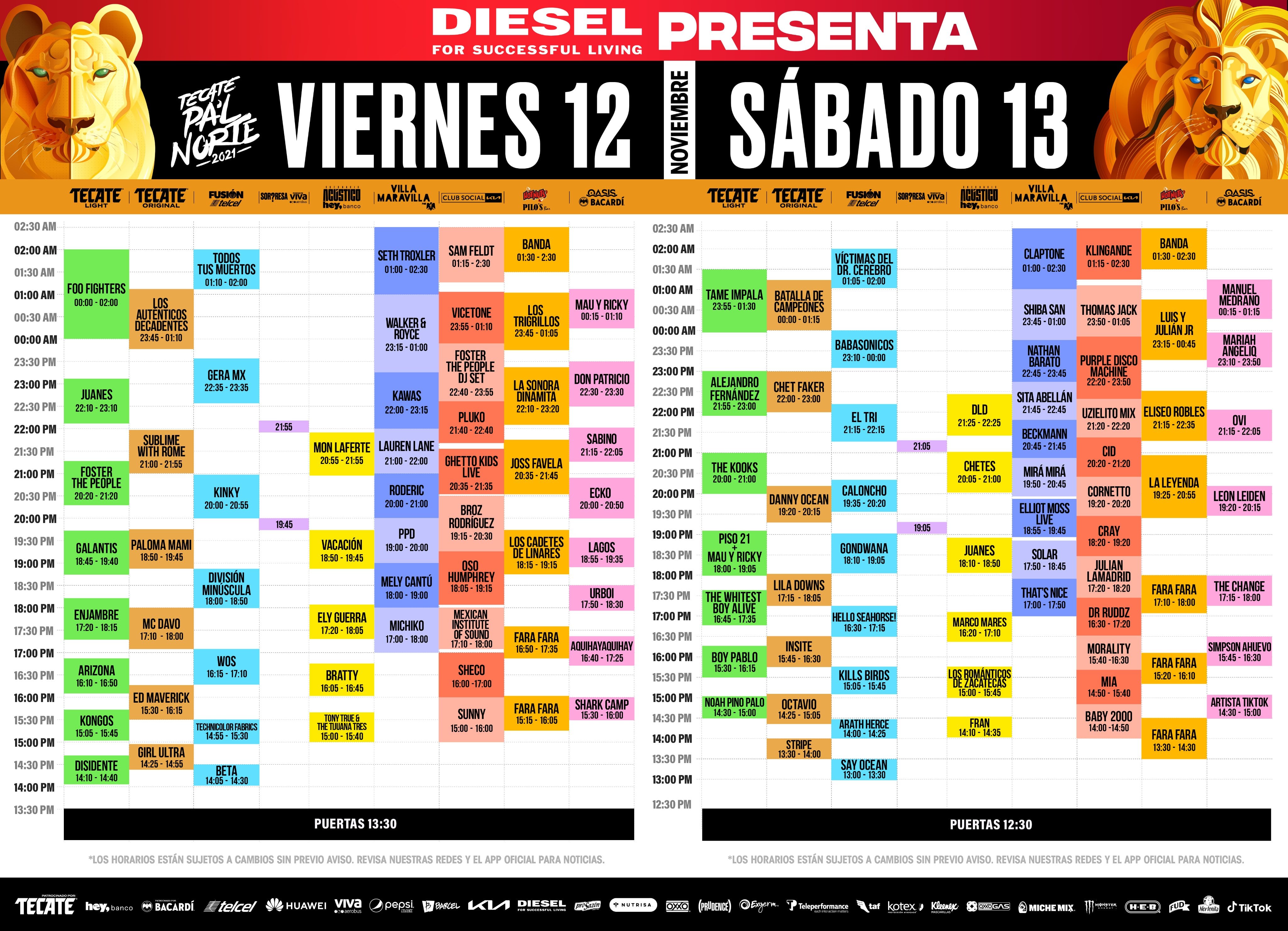 ¿Cuáles son los horarios del festival Tecate Pa´l Norte?