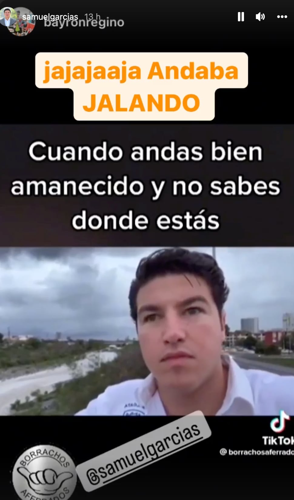Los memes de Samuel García perdido llegaron hasta el gobernador de Nuevo León, quien, como acostumbra, compartió este meme en Instagram.