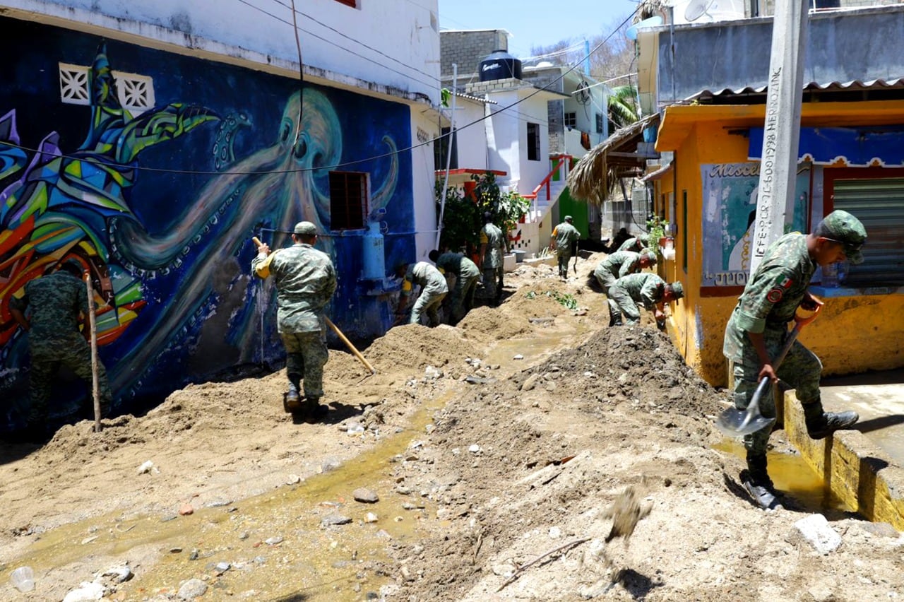 Durante todo el día, elementos del Ejército continuaron con las labores de desazolve y recuperación de las calles de Oaxaca.