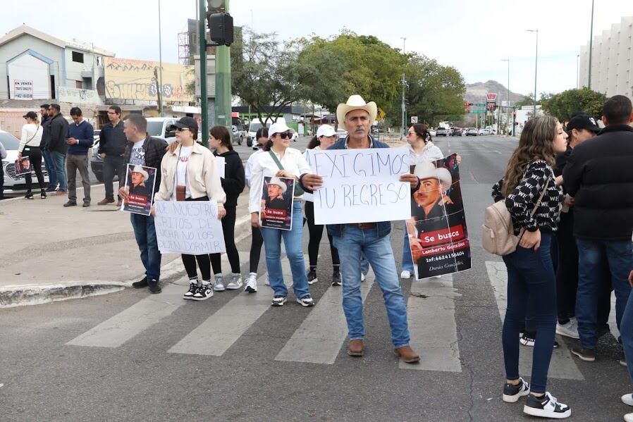 Familiares de Lamberto González Quijada protestaron este martes 7 de enero de 2025 en calles de Sonora por su desaparición.