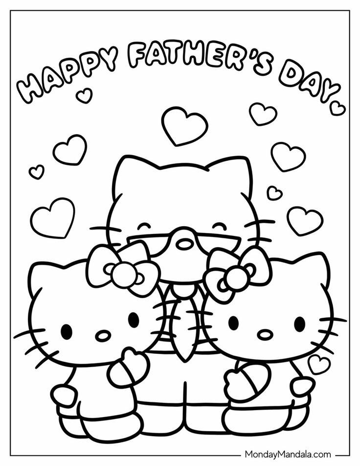 Cerramos este listado de dibujos de Hello Kitty con su papá para colorear por el Día del Padre con esta imagen.
