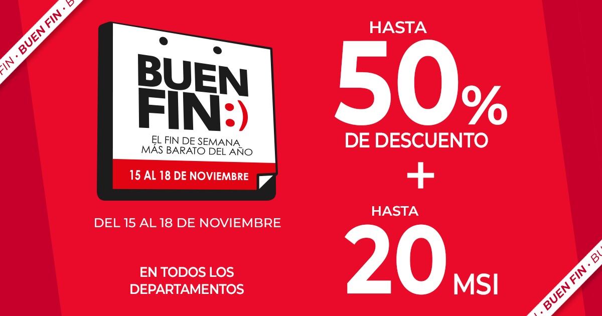 Con hasta 50% de descuento, más hasta 20 meses sin intereses, ¡tu dinero rinde más que nunca! Y lo mejor de todo es que las ofertas estarán disponibles tanto en tiendas físicas como en línea. También puedes comprar en línea y recoger dos horas después en tu tienda más cercana. Y lo mejor: tendrán envíos gratis desde 299 MXN.
