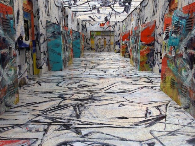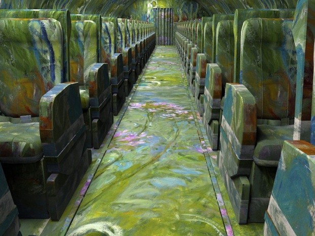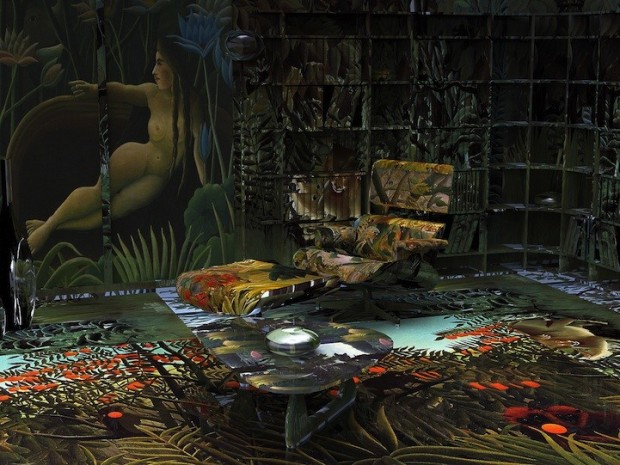 Aunque a primera vista estas habitaciones pueden verse como algo que uno puede encontrarse en algún hotel boutique, es posible que te sorprendas al descubrir que en realidad son la obra de un artista digital. Jon Rafman, conocido por su serie Google Street View, está detrás de un proyecto en marcha llamado Brand New Paint Job, donde toma pinturas modernistas, como los de Francis Bacon, Jean-Michel Basquiat, Marc Chagall, Jasper Johns, Yves Klein, y Willem De Kooning, y envuelve completamente habitaciones con ellas. Por supuesto, estas no son habitaciones ordinarias, son modelos 3D tomadas de Google 3D Warehouse, una galería en línea que permite a los usuarios de Google Sketchup, un programa gratuito de modelado 3D que le deja subir y compartir sus obras.