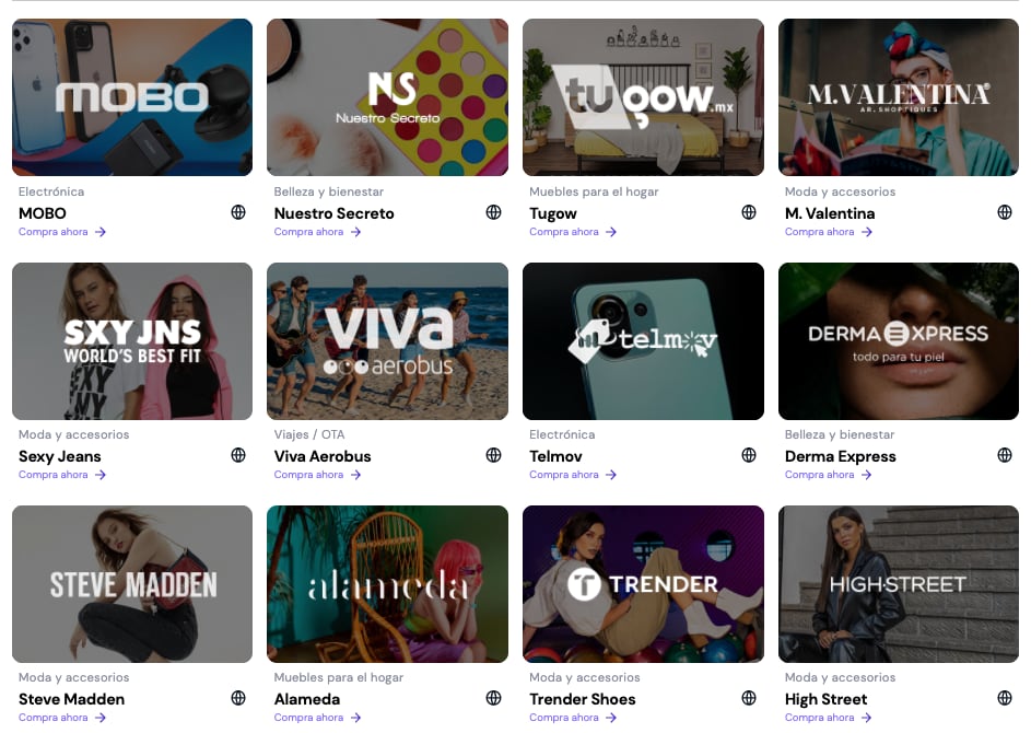 Además, puedes comprar en más de 1,700 comercios entre los que destacan moda, accesorios, belleza, bienestar, hogar, tecnología, juguetes y hasta boletos de avión en tiendas como VivaAerobus, Xiaomi Store, Sxy Jns, Nautica, Steve Madden, Juguetibici, Mobo, Devlyn.