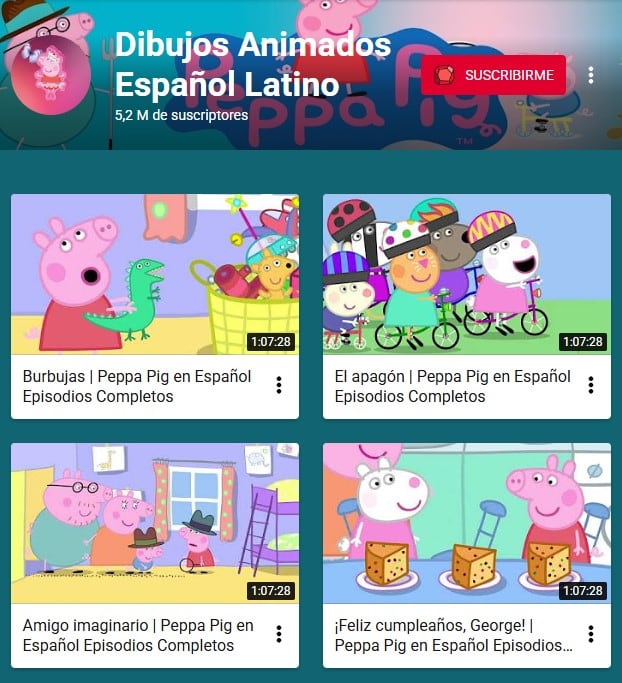 Dicha cuenta de YouTube destaca porque tiene clips cortos con historias de Peppa Pig.