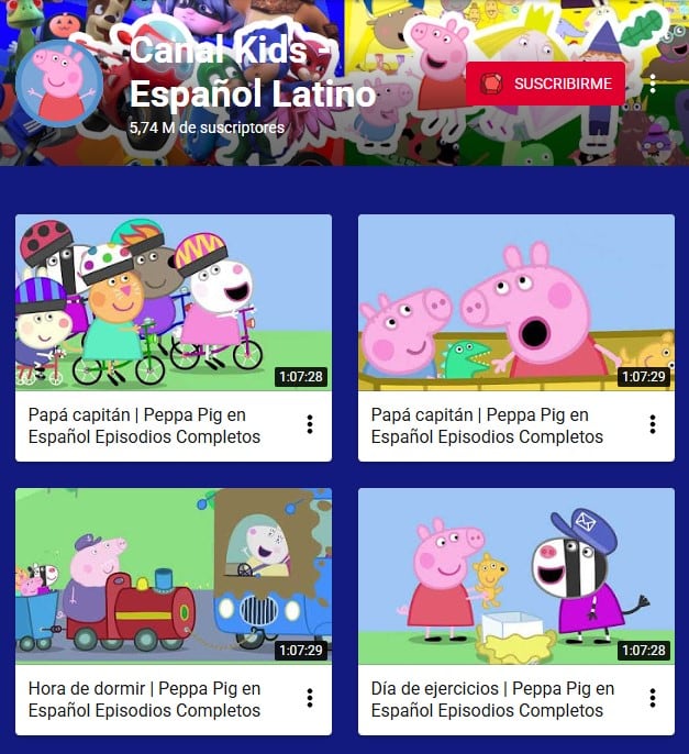 Canales en español de Peppa Pig en YouTube Kids: Canal Kids - Español Latino