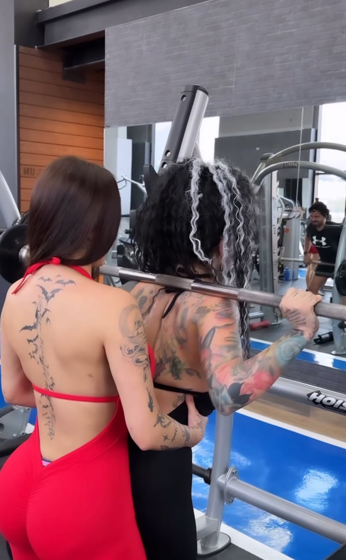 La modelo no hizo sola los ejercicios, la acompañó una tatuadora profesional llamada Lissy Elizondo, quien la mantenía motivada al hacer abdominales con besos incluidos.