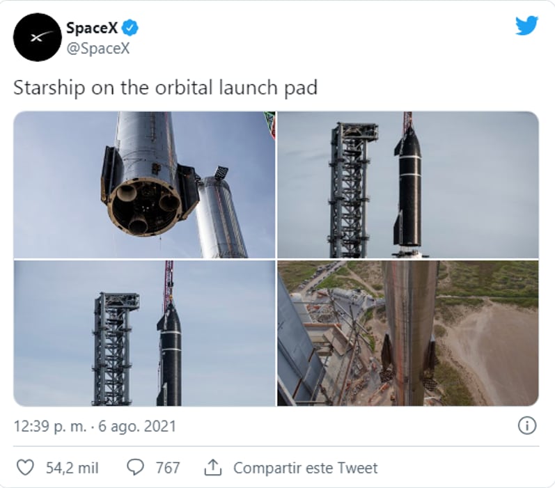 El pasado viernes 6 de agosto, la empresa espacial SpaceX, publicó a través de su cuenta oficial de Twitter las imágenes de su próximo cohete por lanzar.