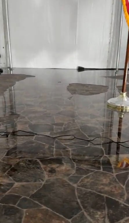 Mediante un video captado por el periodista Jason Delgado, es posible observar cómo el agua inundó la zona de dormitorios de Alligator Alcatraz, alcanzando al menos 4 centímetros de altura.