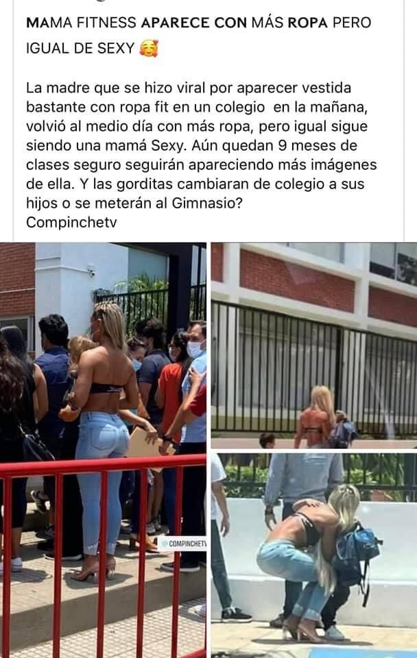 Asimismo, en este se escucha a otra mamá del colegio criticándola y mencionando la idea de cambiar a sus hijos de escuela debido a la presencia de la modelo fitnes.