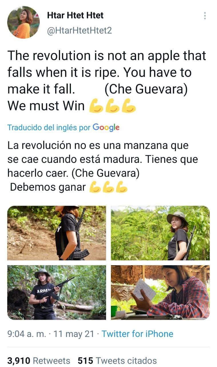Htar Htet Htet también ha publicado por medio de su cuenta de Twitter una serie de fotos de ella misma dentro de un territorio controlado.