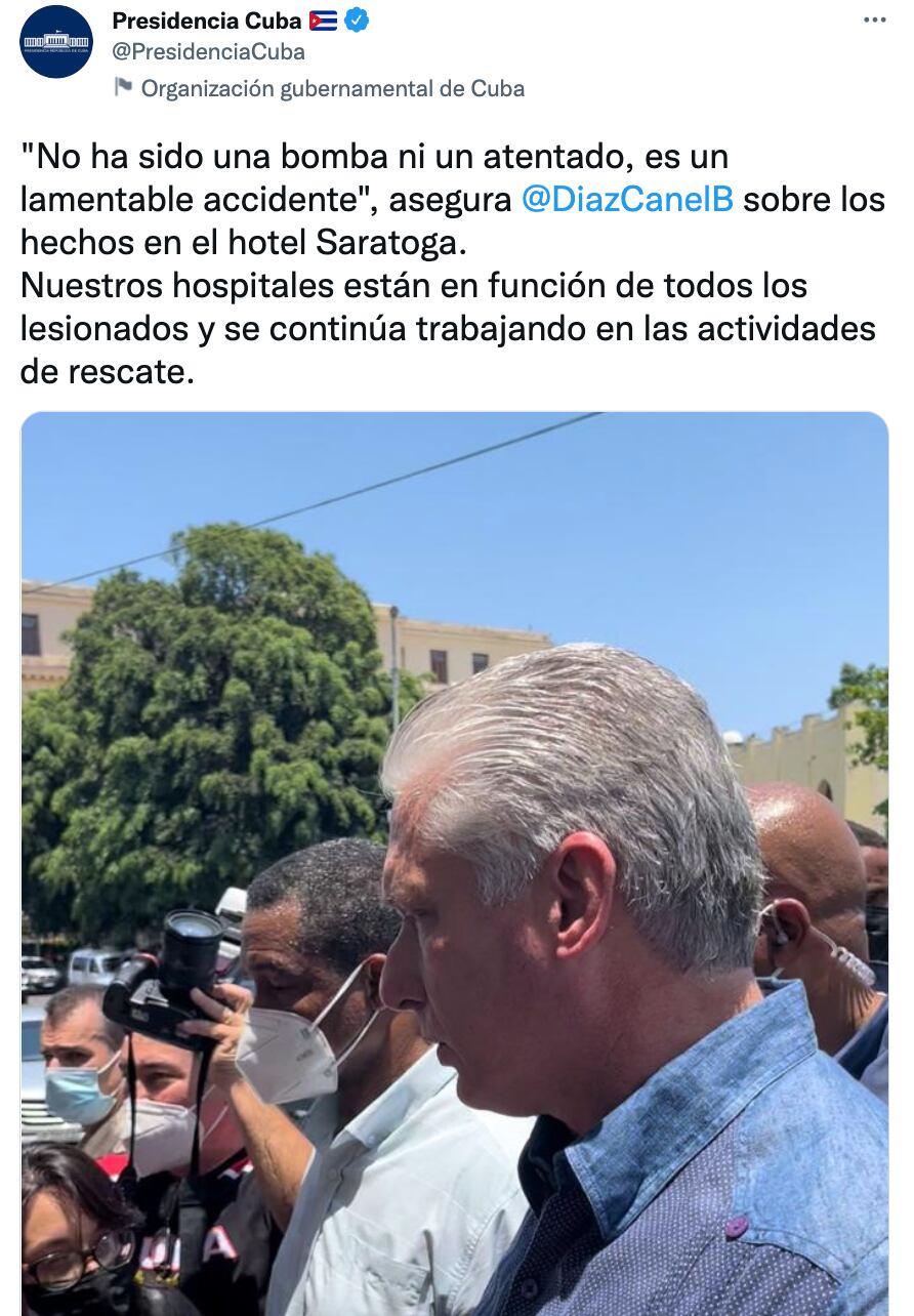 De acuerdo con el presidente de Cuba, Miguel Díaz-Canel, la explosión que e registró la mañana del 6 de abril no fue un atentado.