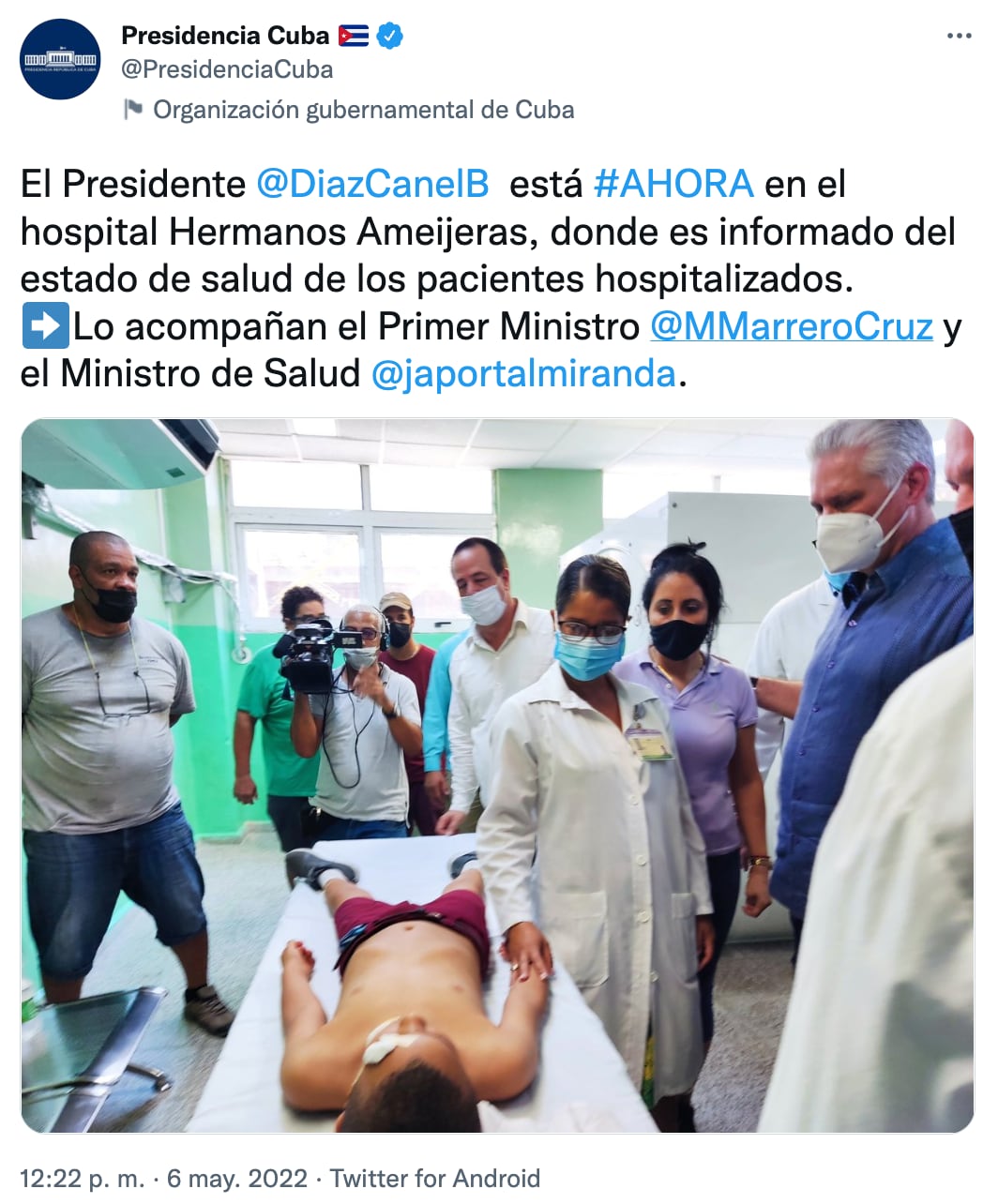 Díaz-Canel visita en hospital a heridos de hotel Saratoga