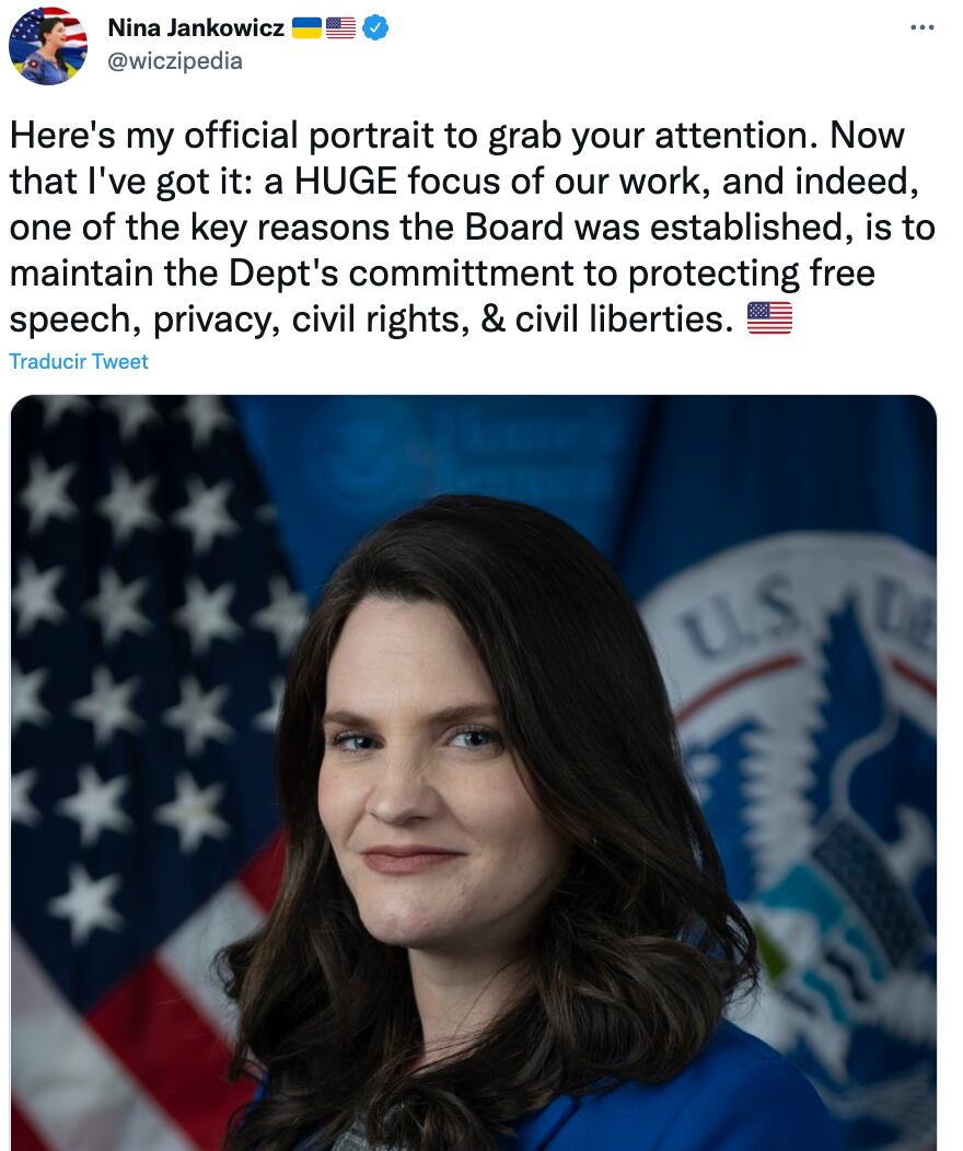 Jankowicz es la titular de la Junta de Gobernanza de la Desinformación, creada para “mantener el compromiso del Departamento de proteger la libertad de expresión”.