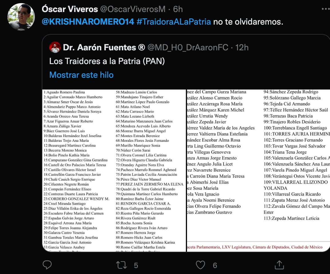 Tras la votación del pasado domingo 17 de abril, donde la reforma de AMLO no fue aprobada, los legisladores que votaron en contra fueron llamados traidores a la patria por el mandatario y replicado por los funcionarios de Morena.