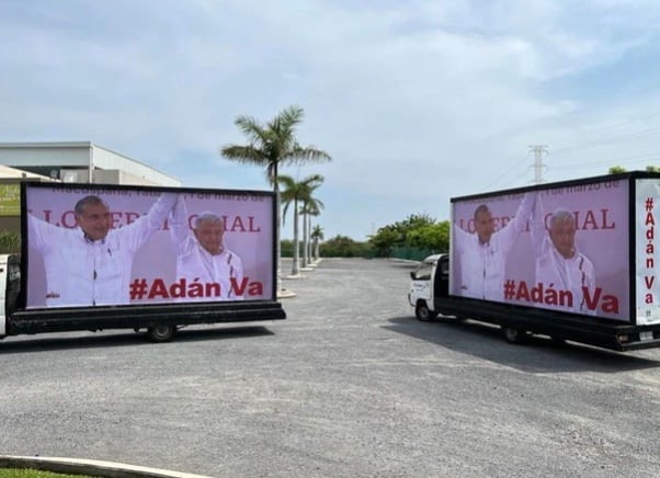 Bajo el hashtag #AdánVa, la propaganda constaba de una imagen de Adán Augusto López junto al presidente AMLO, que además de ser paisanos, también son amigos.