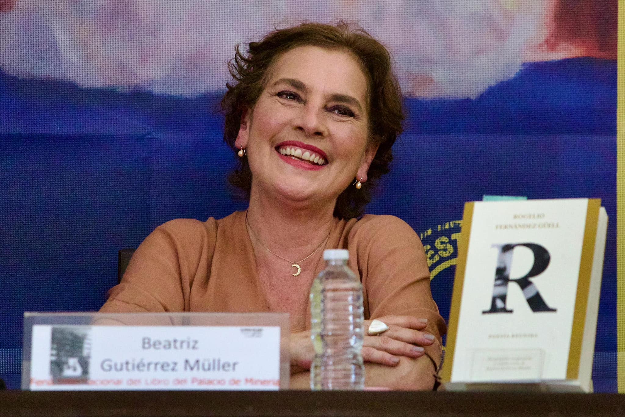 Beatriz Gutiérrez Müller fue la encargada de presentar el libro Poesía reunida de Rogelio Fernández Güell, esto dentro de la edición 46 de la Feria del Libro en el Palacio de Minería.