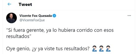 A través de redes sociales el expresidente Vicente Fox criticó las palabras de AMLO respondiendo: “¿Y ya viste tus resultados?”