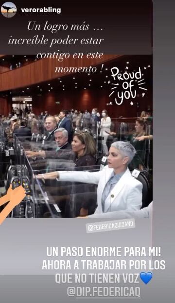 En Instagram, la legisladora comentó que este 29 de agosto comienza una experiencia más: la de ser diputada federal, en la que, afirmó, estará acompañada de un “maravilloso equipo”.