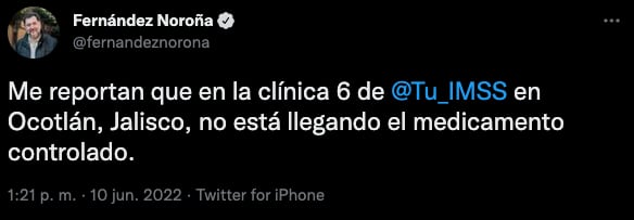 “Me reportan que en la clínica 6 de @Tu_IMSS en Ocotlán, Jalisco, no está llegando el medicamento controlado”
