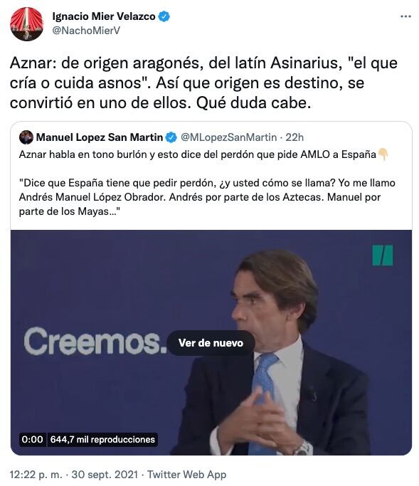 Así explicó Ignacio Mier el apellido de José María Aznar para llamarlo “asno”
