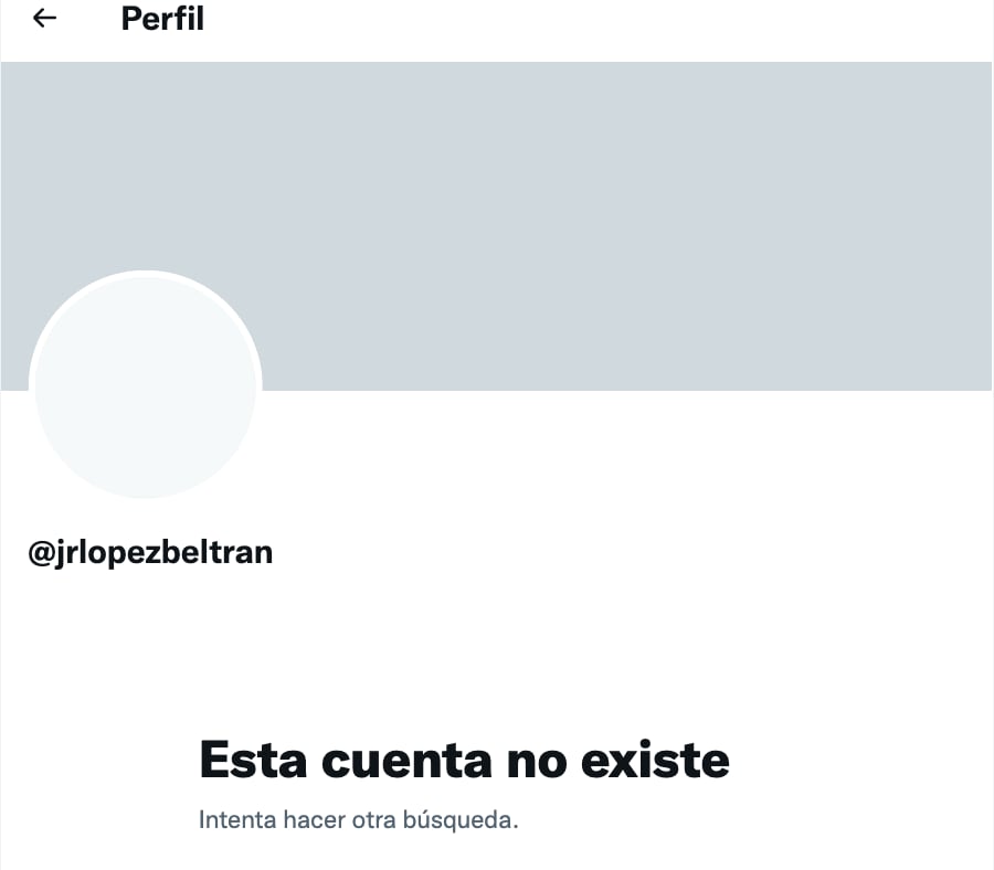 Así se puede comprobar desde esta red social donde la cuenta @JRlopezbeltran ya no existe.