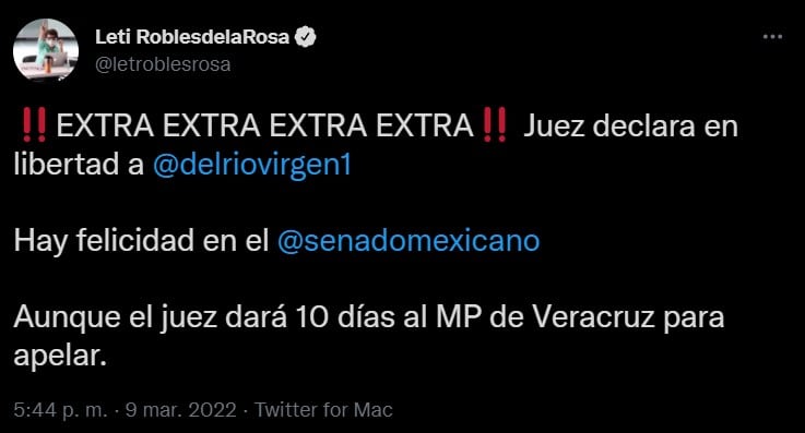 “¡¡EXTRA EXTRA EXTRA EXTRA!! Juez declara en libertad a @delriovirgen1