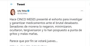 Además, la senadora Lilly Téllez acuso a los senadores de Morena por minimizar y tergiversar discusión de desabasto de medicamentos.