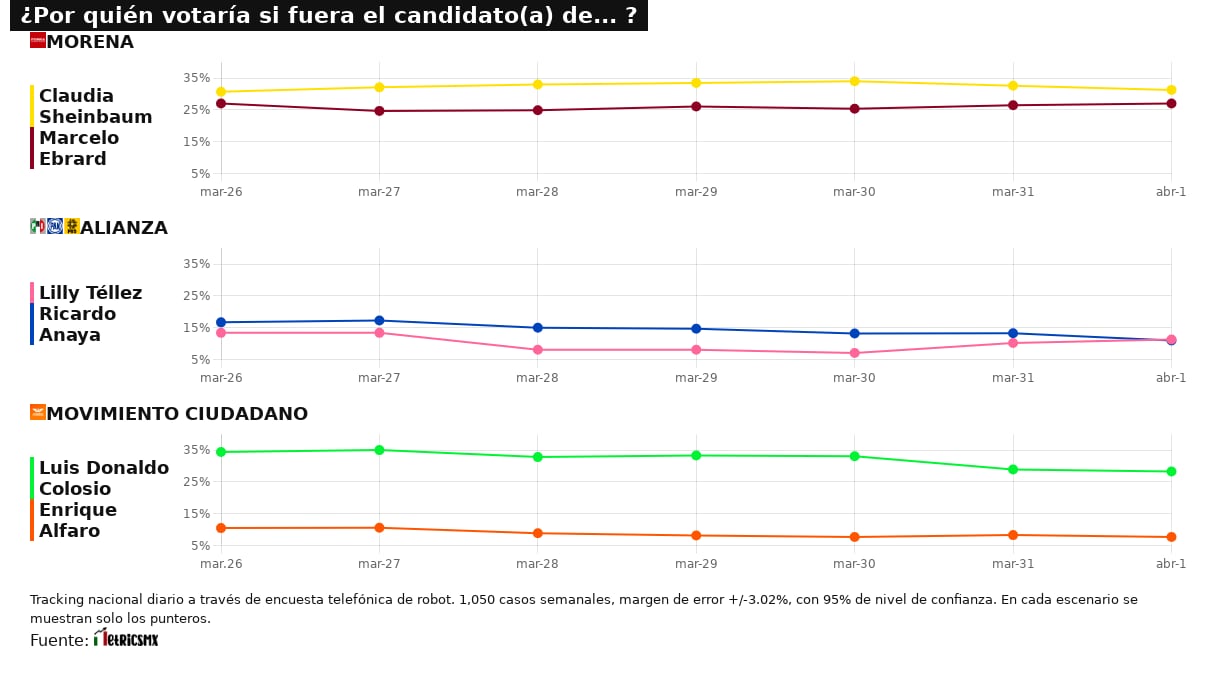 Los candidatos a la presidencia en 2024 este 2 de abril en el tracking presidencial