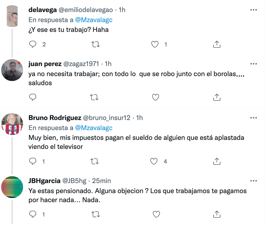 Por otra parte, le recriminaron por estar “aplastada viendo televisión” en lugar de trabajar y hacer valer los impuestos que aportan para su sueldo.