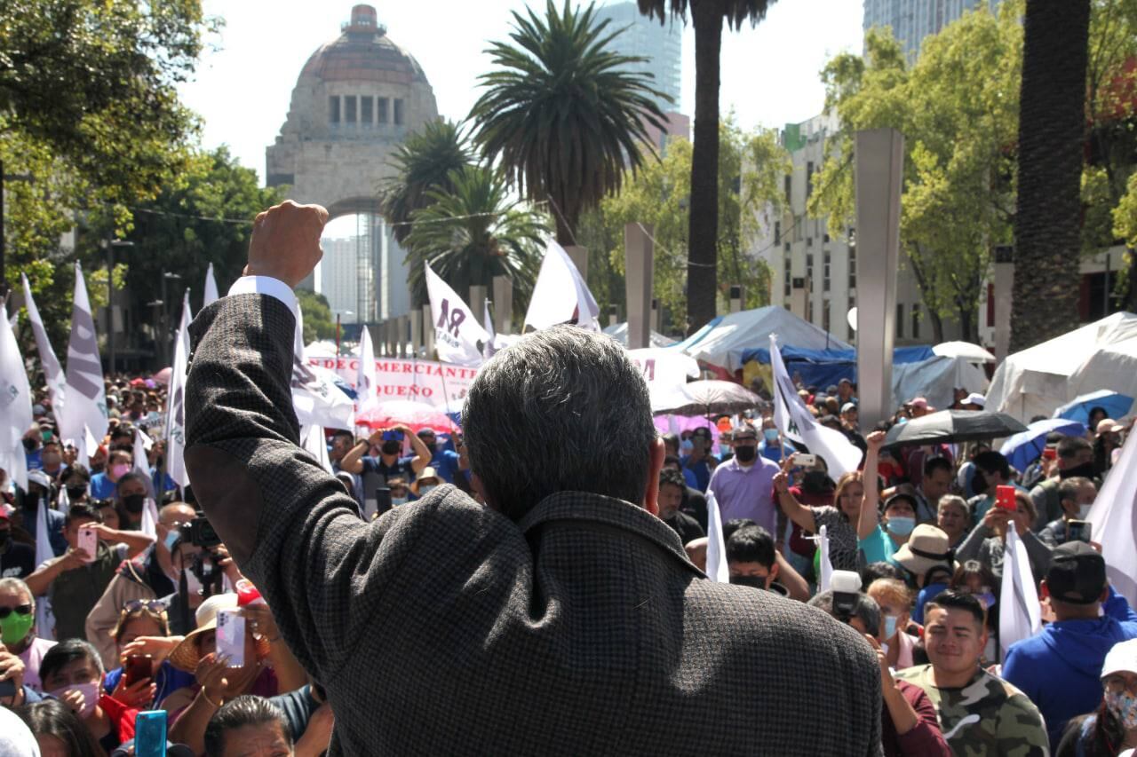 La mañana del sábado 10 de septiembre, el senador aseguró que no se va a dejar y “no nos vamos a rajar”, ante cientos de ciudadanos que se congregaron en el Monumento a la Revolución, para brindarle apoyo en sus aspiraciones presidenciales.