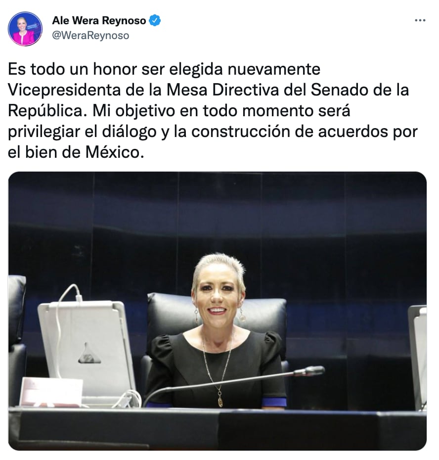 Alejandra Reynoso se mostró alegre de renovar su cargo como vicepresidenta de la Mesa Directiva de la Cámara de Senadores.