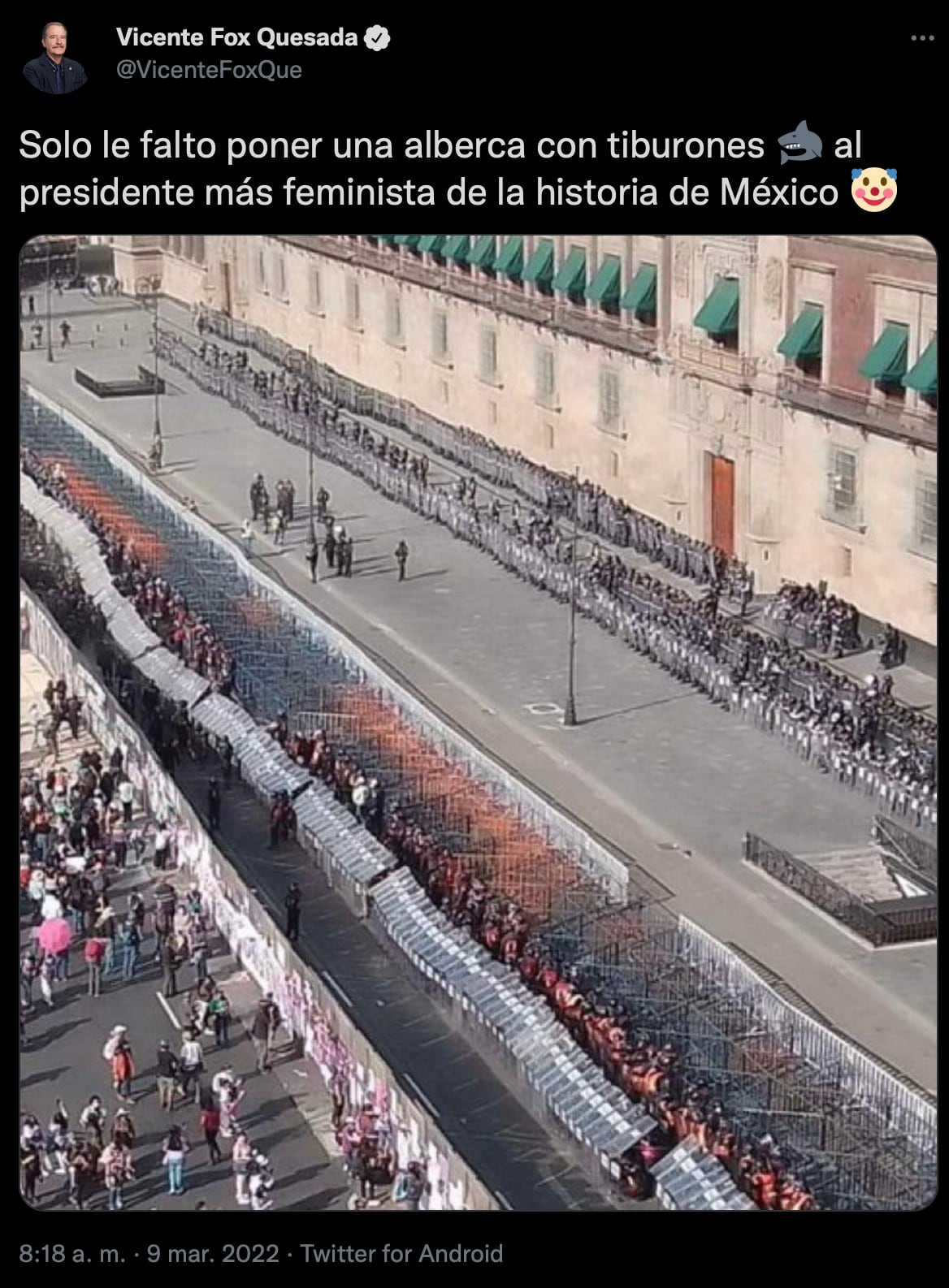 Debido a las vallas que se colocaron alrededor de Palacio Nacional para proteger el edificio durante las protestas por el Día de la Mujer, Vicente Fox aprovechó para burlarse.
