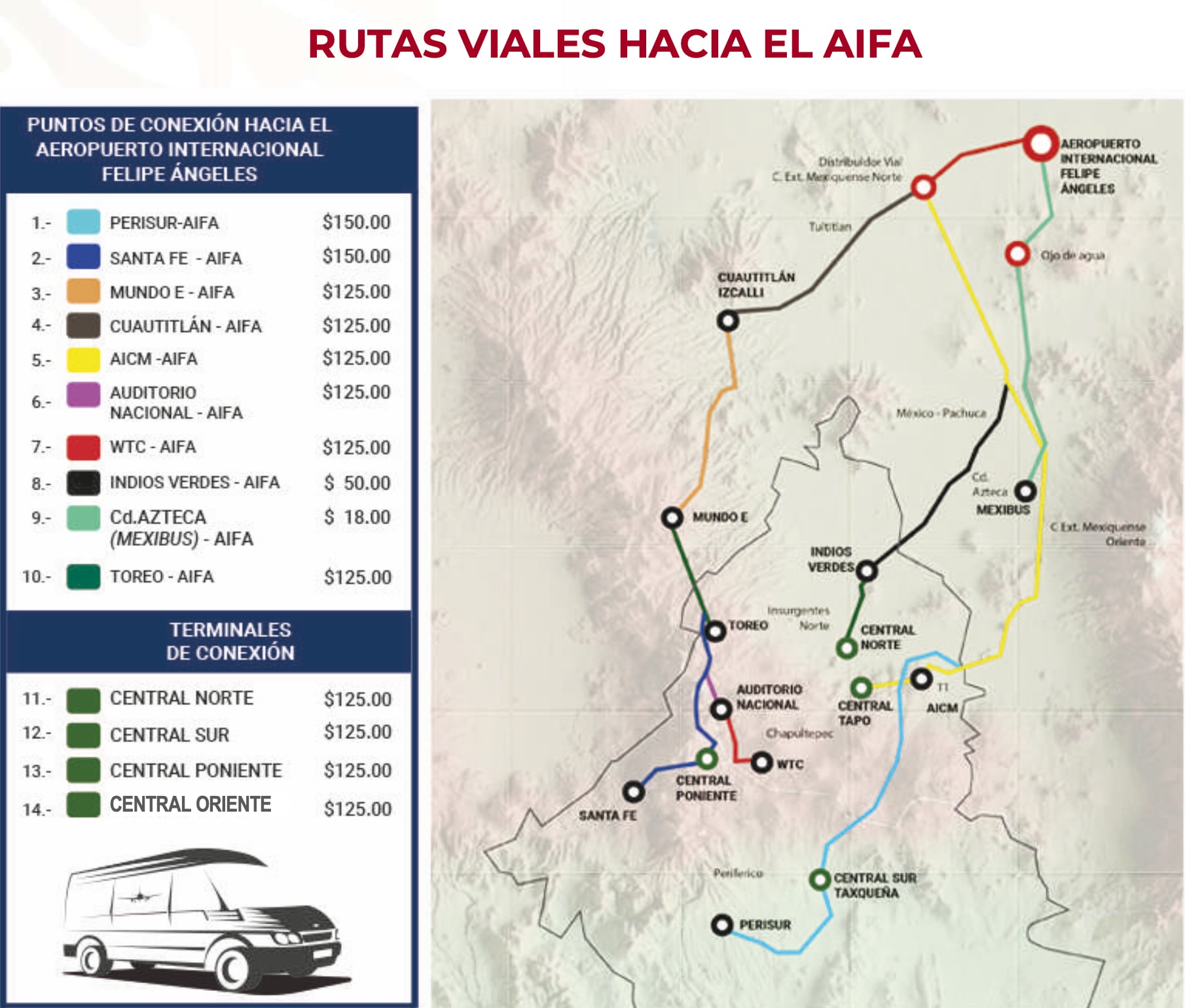 Por otra parte, se compartieron los 14 puntos de conexión y traslado hacia el AIFA que están habilitados para su funcionamiento desde el 21 de marzo.