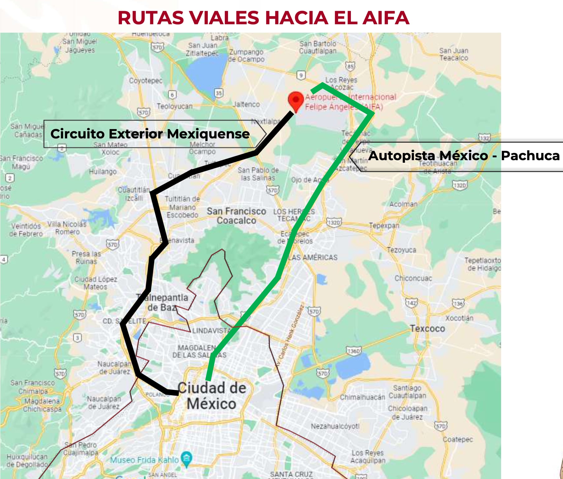 Además, quienes arriben al Aeropuerto Felipe Ángeles, podrán llegar desde por “dos grandes rutas”