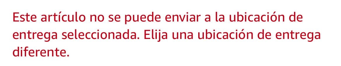 “Este artículos no se puede enviar a la ubicación de entrega seleccionada. Elija una ubicación de entrega diferente”, se lee en el aviso que compartió Amazon Estados Unidos.