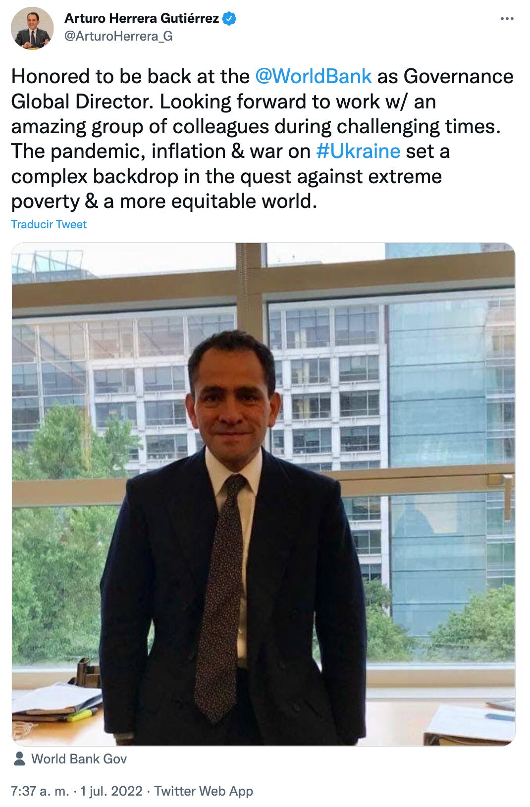 Arturo Herrera Gutiérrez, regresó al Banco Mundial como director global de gobierno, donde comenzará su trabajo, en medio de la crisis por la guerra entre Rusia y Ucrania que lleva 128 días.