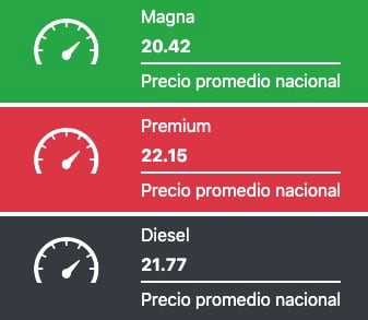 - Nayarit.- El precio es de 22.73 pesos por litro de Premium, 20.92 pesos por la Magna y 22.13 pesos por Diésel