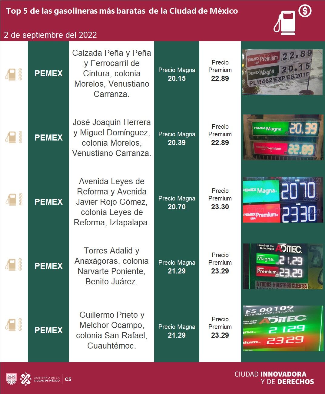 Según el reporte diario del C5 en CDMX, estos son los precios de las gasolineras más baratas. Estos son los precios de hoy 2 de septiembre de 2022: